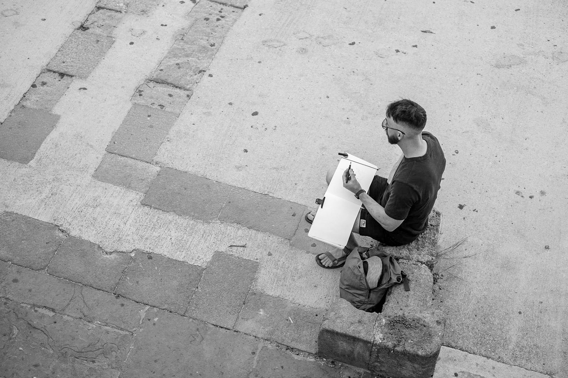 His artistic practice focuses on place, using location based sketching and on-site studies to explore the relationship between people and the environments they occupy. These paintings reflect time spent in place rather than fixed views.